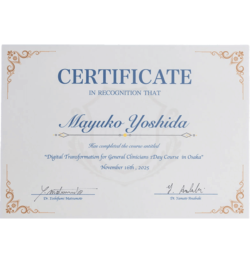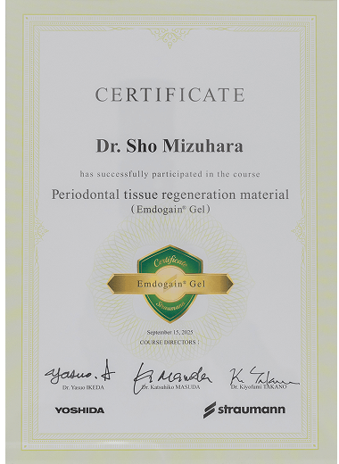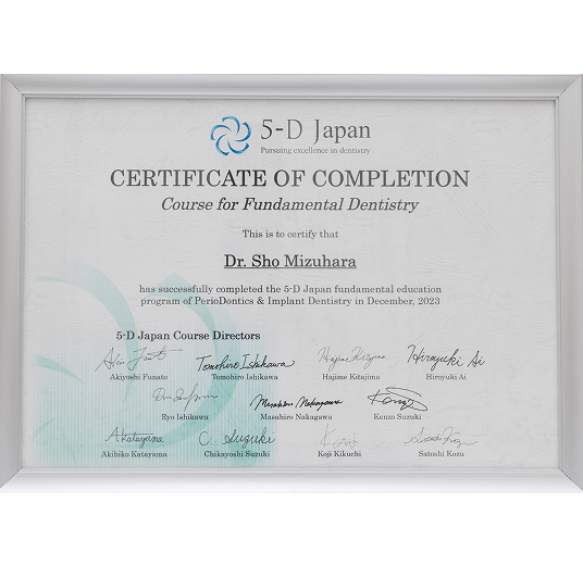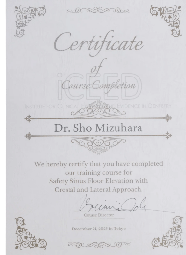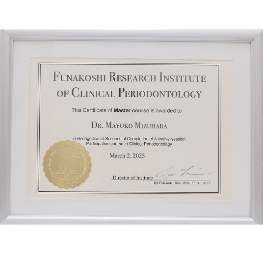 世界基準の歯科医療を提供するため、海外の大学のプログラムや学会などに参加し、根拠に基づいた医療や最先端の歯科医療について日々技術や知識の研鑽を積んでまいりました。