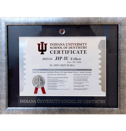 米インディアナ大学歯学部 インプラント科のプログラムを受講し、国際的な教育環境のもとで臨床経験を積んだ当院長によるインプラント治療。