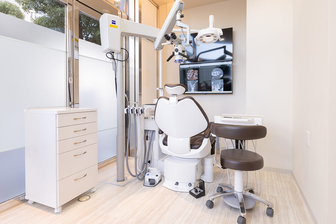 ご相談しやすいよう、プライバシーに配慮したカウンセリングルームや完全個室の診療室、精密な治療のためのマイクロスコープをはじめとして歯科治療を円滑に正確に行なうための機器を取り入れています。